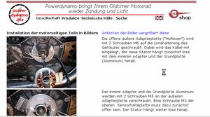 La chispa de centrales de interrupción clásicas tiene con 10.000 voltios sólo una energía pequeña y es por eso amarilla y gorda. La chispa de nuestras centrales es una chispa de alta energía con hasta 40.000 voltios y es por eso muy concentrado y azúl, que le hace menos buen visto. Además esta chispa está producida sólo con un número de revoluciones pedaleado con el pedal de arranque. Sólo estirar el pedal de arranque con la mano no produce una chispa. |